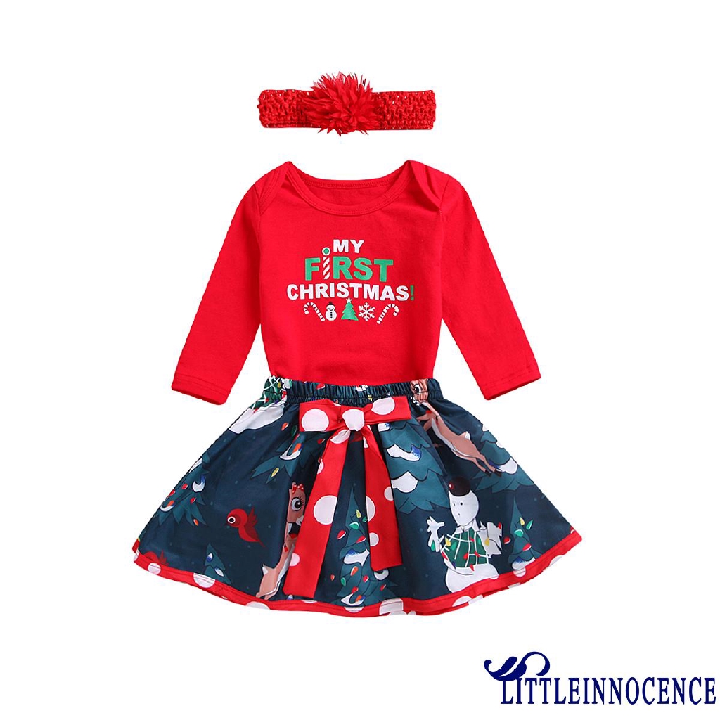 Newborn Infant Baby Girl My First Christmas Print Romper Red Tutu Skirt Headband 3 Pcs Outfits Baby Girls Clothing Sets
