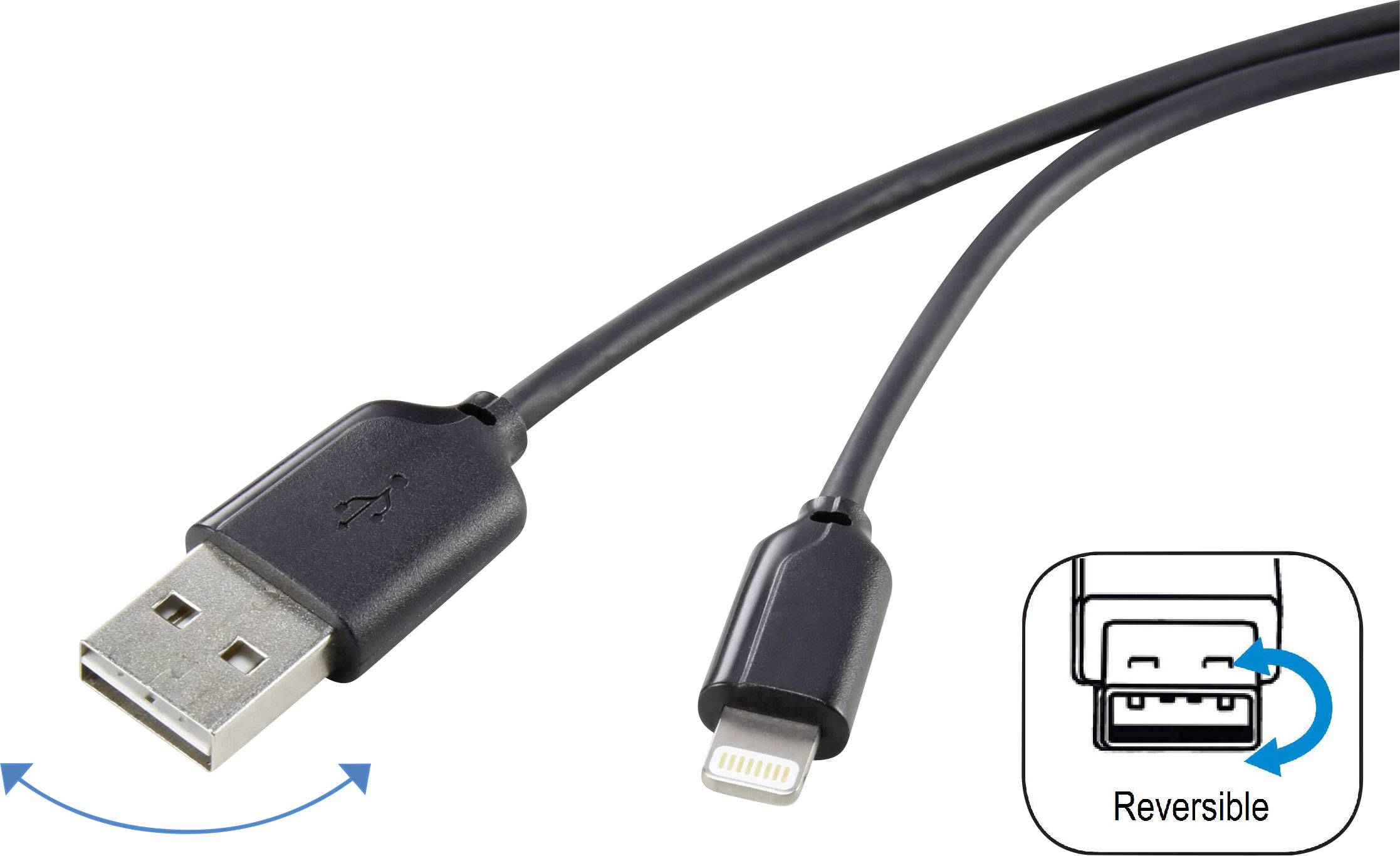 Renkforce Apple Lightning Anschlusskabel Fur Ipod Ipad Iphone Mit Beidseitig Verwendbaren Usb A Stecker 1 M Schwarz Kaufen
